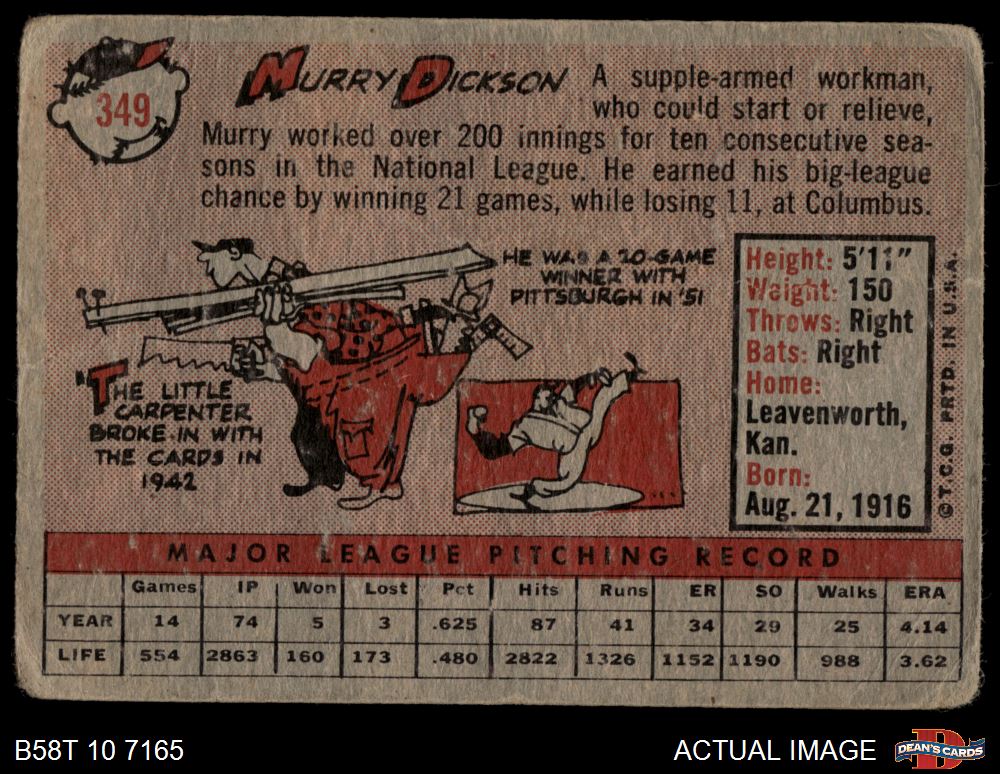 1958 Topps #349 Murry Dickson 1 - POOR
