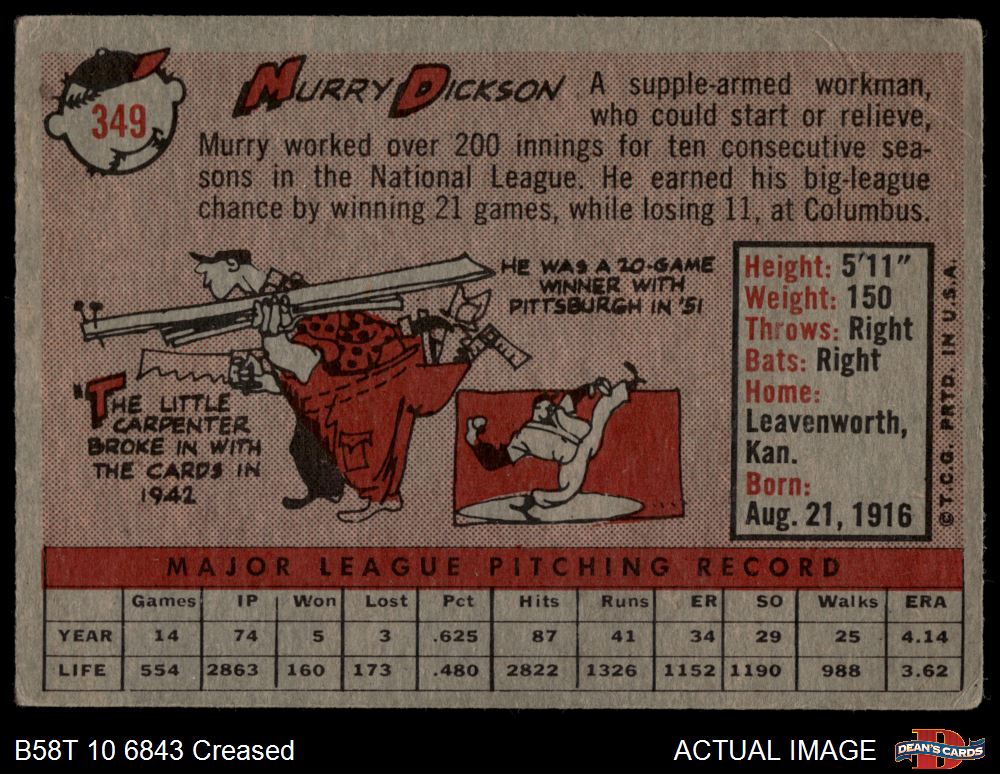 1958 Topps #349 Murry Dickson 2 - GOOD