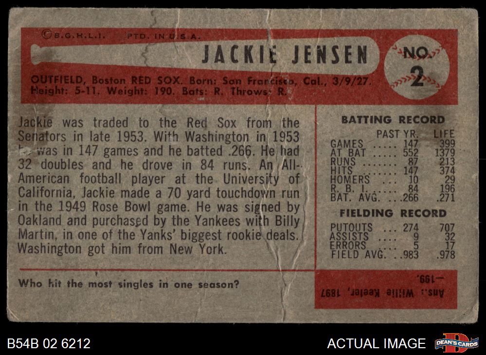 1954 Bowman #2 Jackie Jensen 1 - POOR