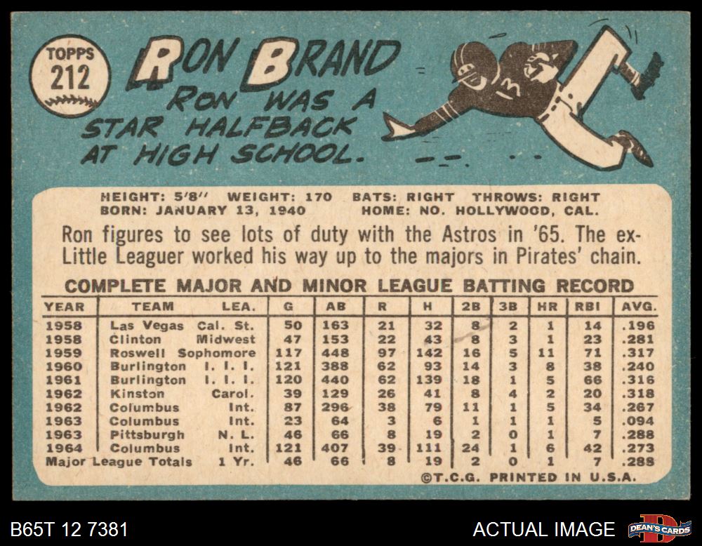 1965 Topps #212 Ron Brand 5 - EX
