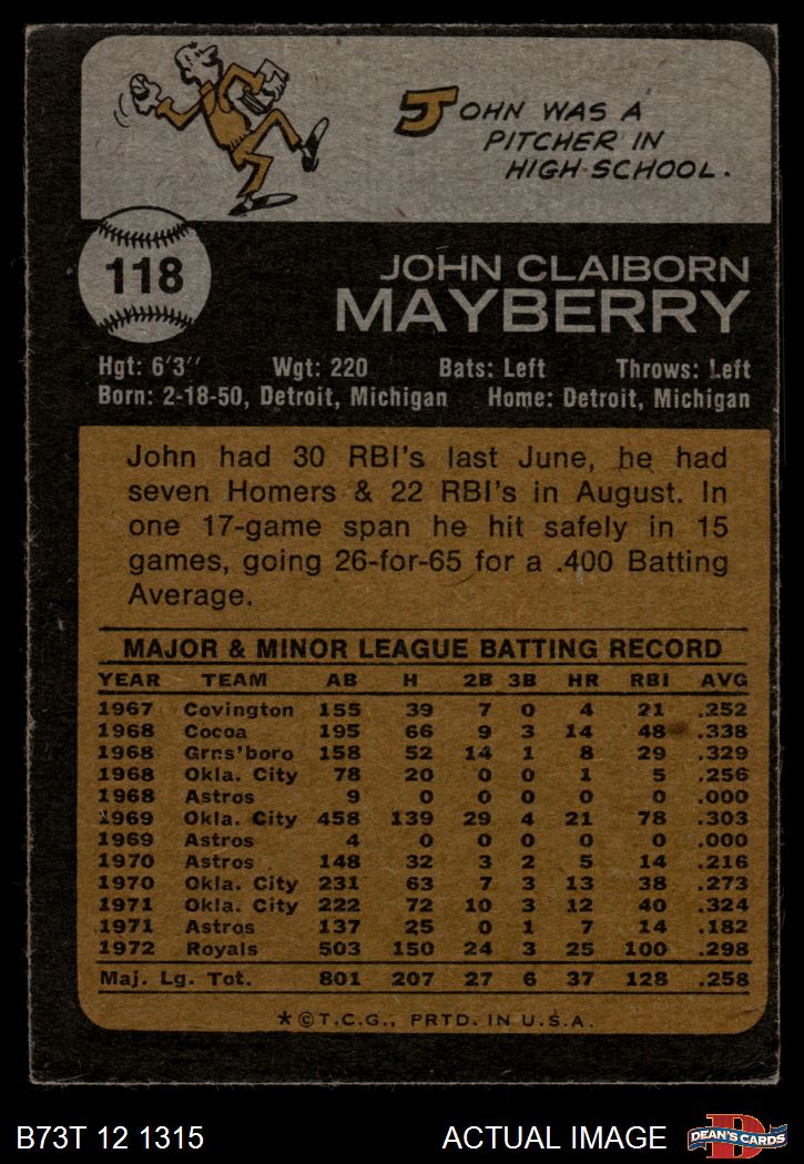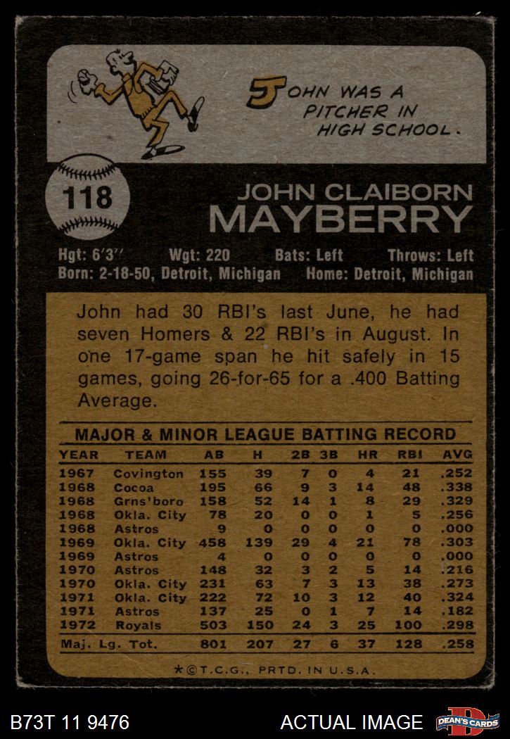 1973 Topps #118 John Mayberry 3 - VG