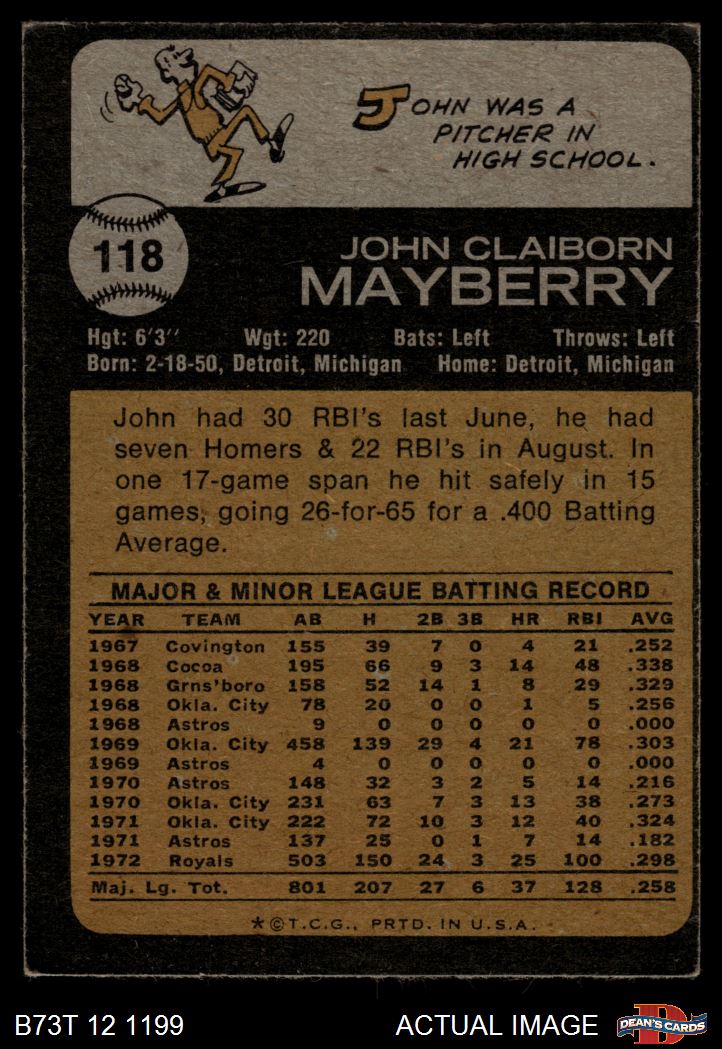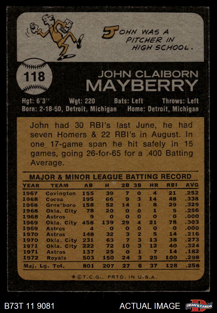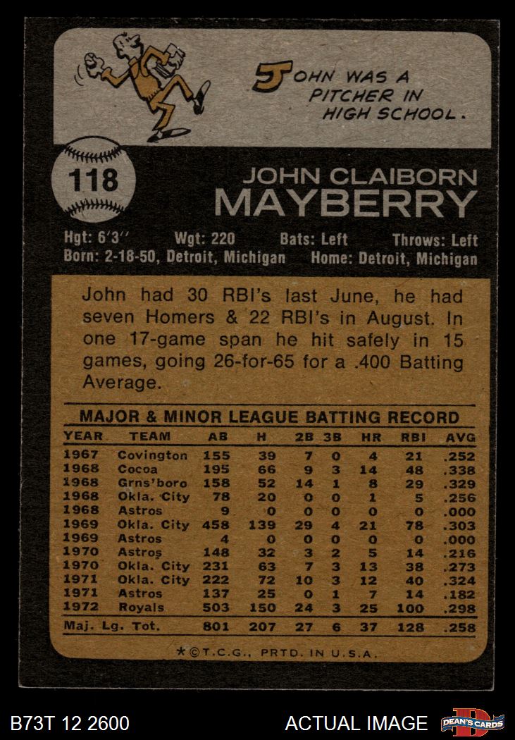 1973 Topps #118 John Mayberry 4 - VG/EX