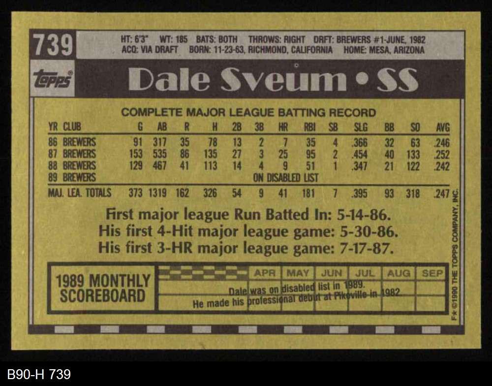 1990 Topps #739 Dale Sveum 8 - NM/MT