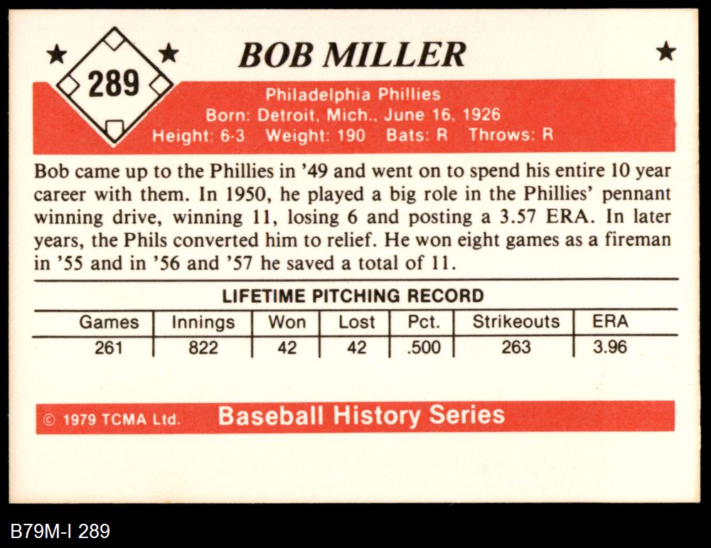 1979 TCMA The 1950's #289 Bob Miller