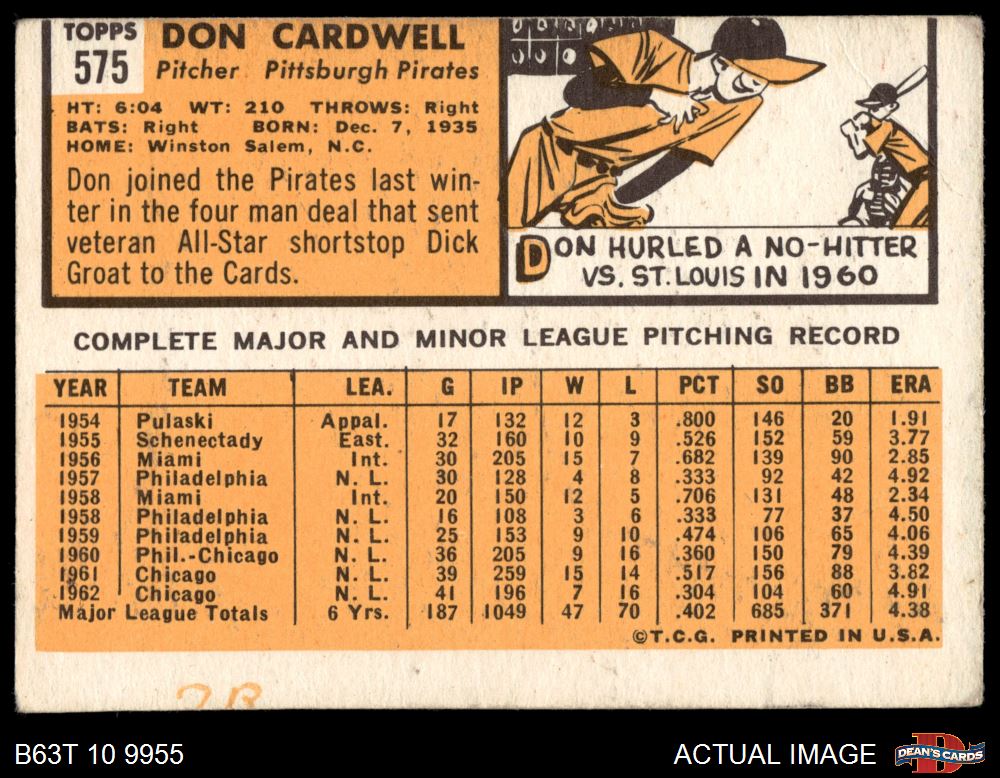 1963 Topps #575 Don Cardwell