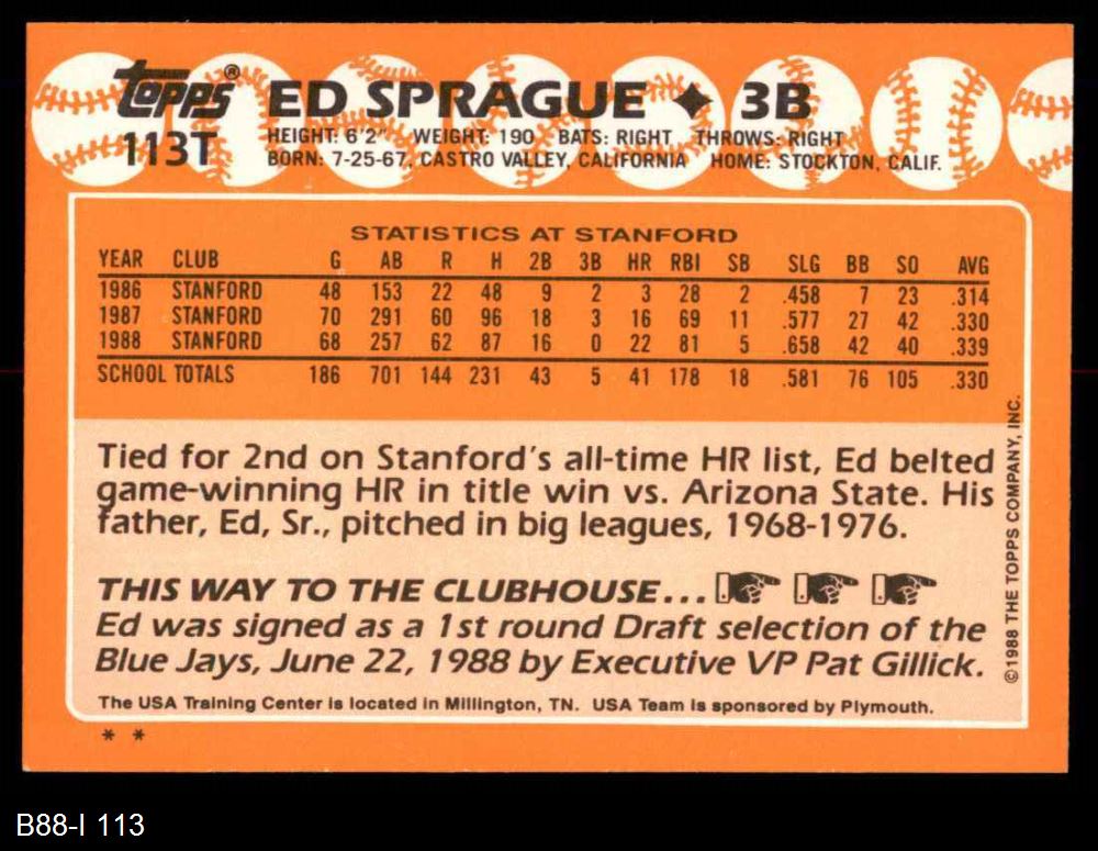 1988 Topps Traded #113 T - Ed Sprague Team USA 8 - NM/MT