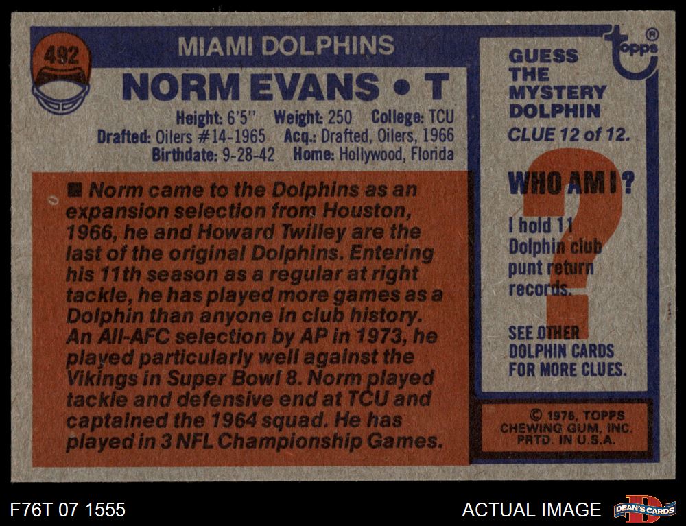1976 Topps #492 Norm Evans 6 - EX/MT