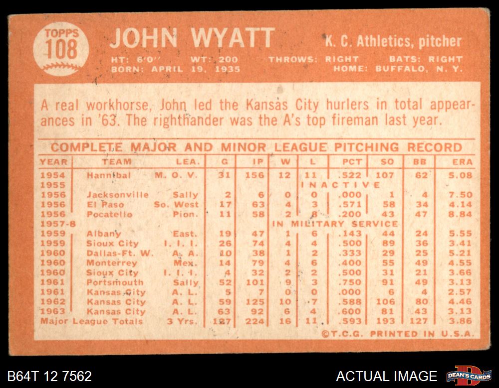 1964 Topps #108 John Wyatt