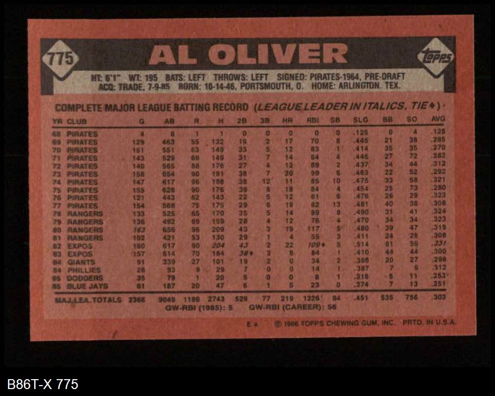 1986 Topps #775 Al Oliver