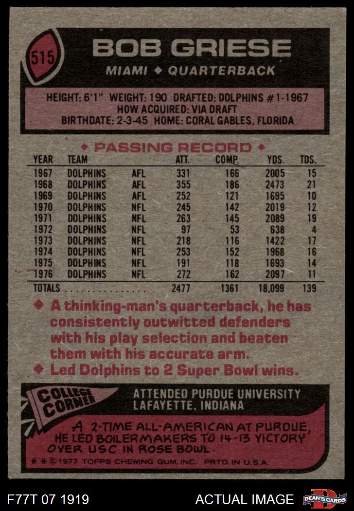 1977 Topps #515 Bob Griese 4 - VG/EX