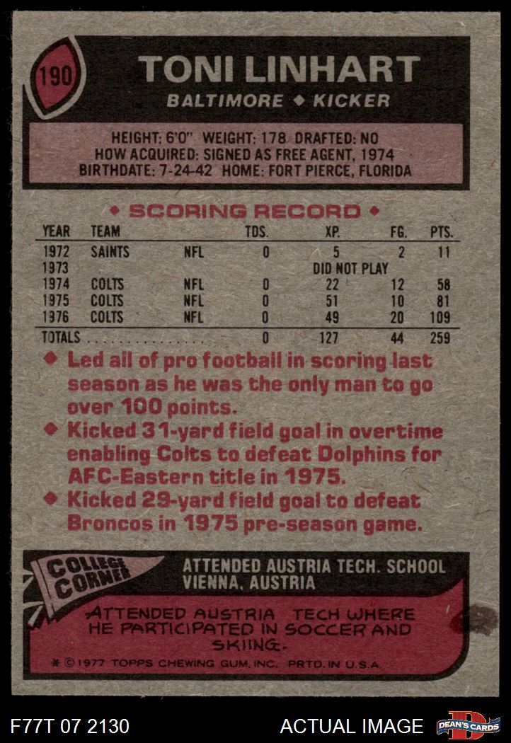 1977 Topps #190 Toni Linhart 6 - EX/MT