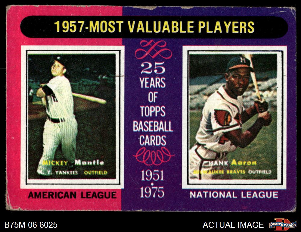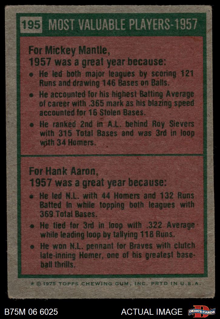 1975 Topps Mini #195 - Mickey Mantle / Hank Aaron 1957 MVPs 2 - GOOD