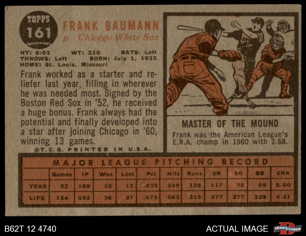 1962 Topps #161 NRM Frank Baumann 2 - GOOD