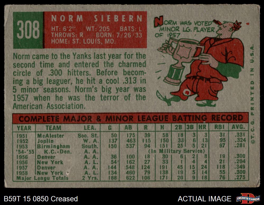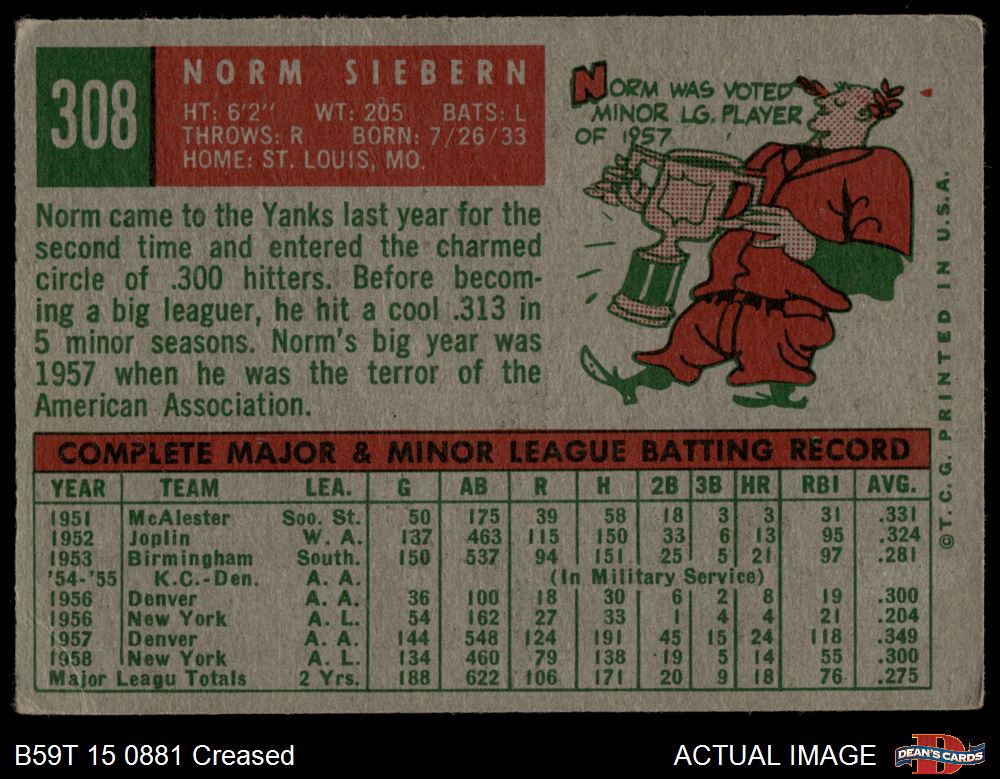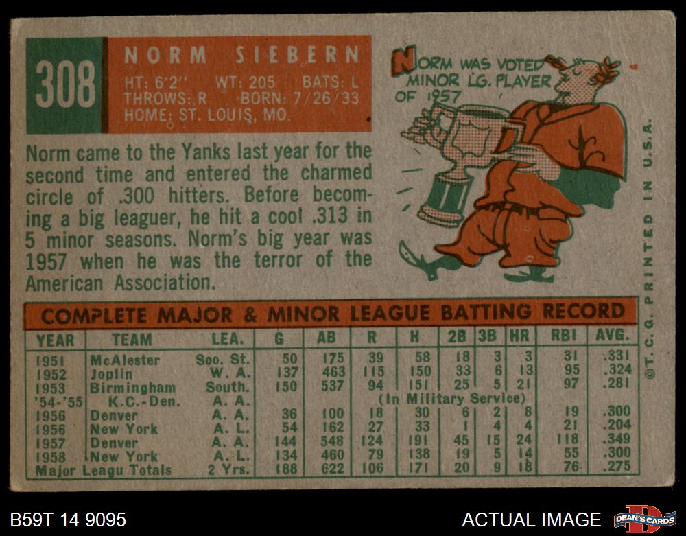 1959 Topps #308 Norm Siebern Front Thumbnail