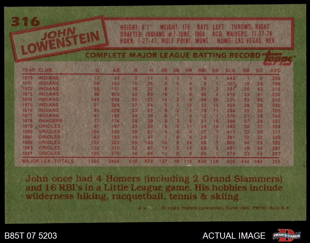 1985 Topps #316 John Lowenstein 6 - EX/MT