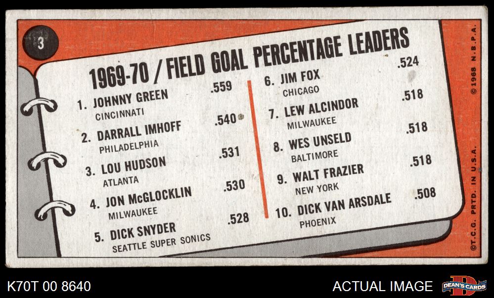 1970 Topps #3 - Lou Hudson / Darrall Imhoff / Johnny Green Field Goal Pct Leaders 1.5 - FAIR