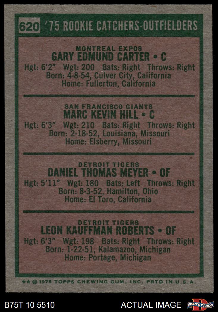 1975 Topps #620 - Gary Carter / Marc Hill / Danny Meyer / Leon Roberts Rookie Catchers - Outfielders 7.5 - NM+