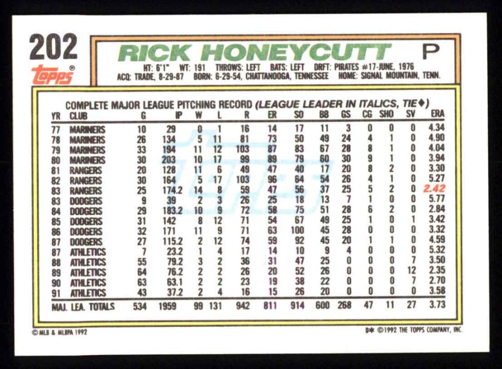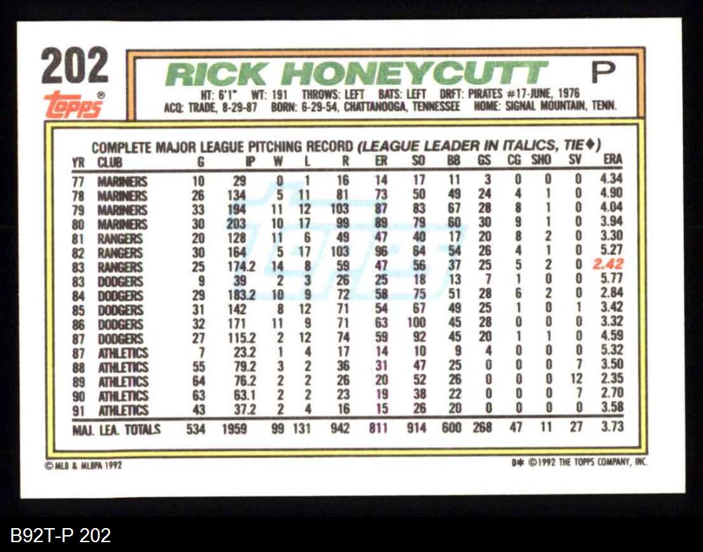 1992 Topps #202 Rick Honeycutt
