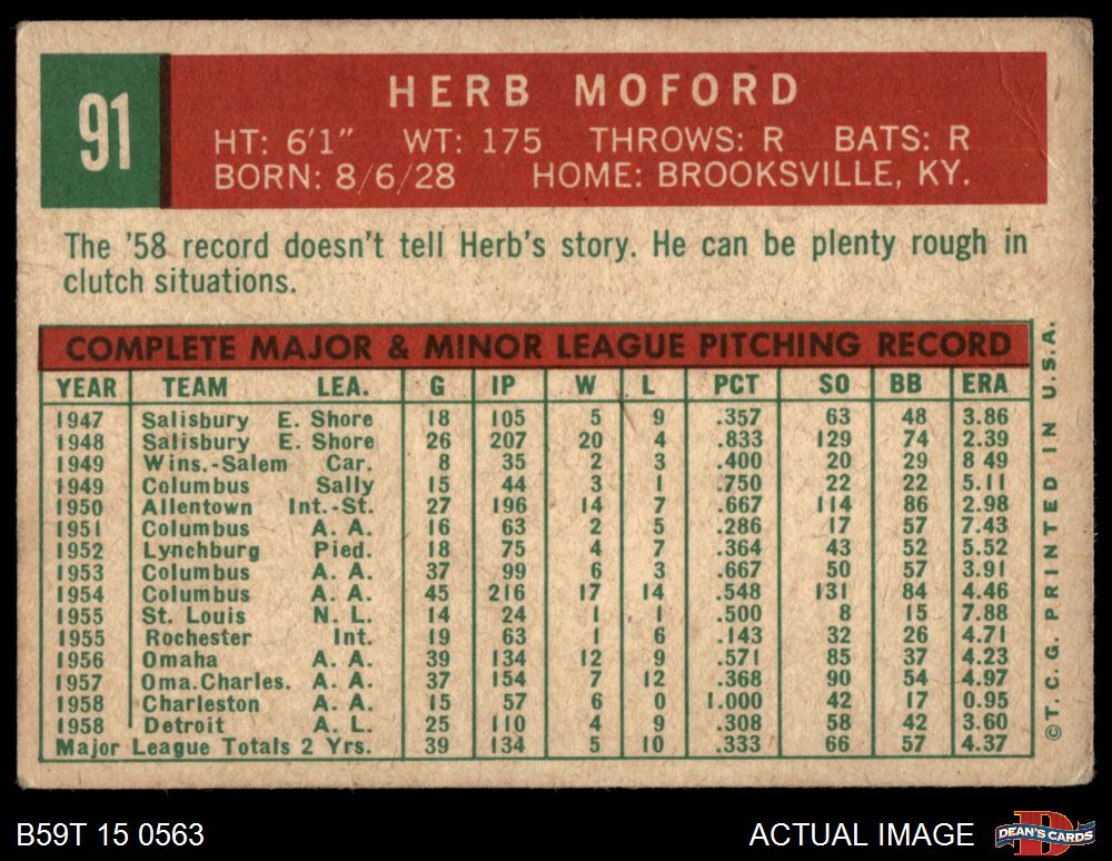1959 Topps #91 Herb Moford 1.5 - FAIR