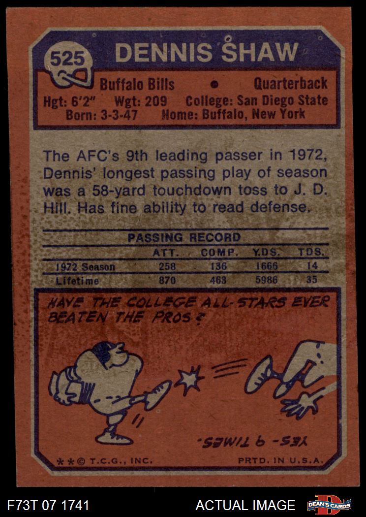 1973 Topps #525 Dennis Shaw 3 - VG