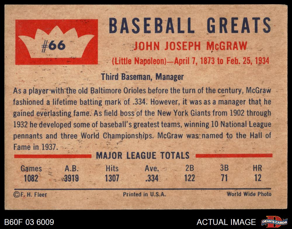 1960 Fleer #66 John McGraw 2.5 - GD+