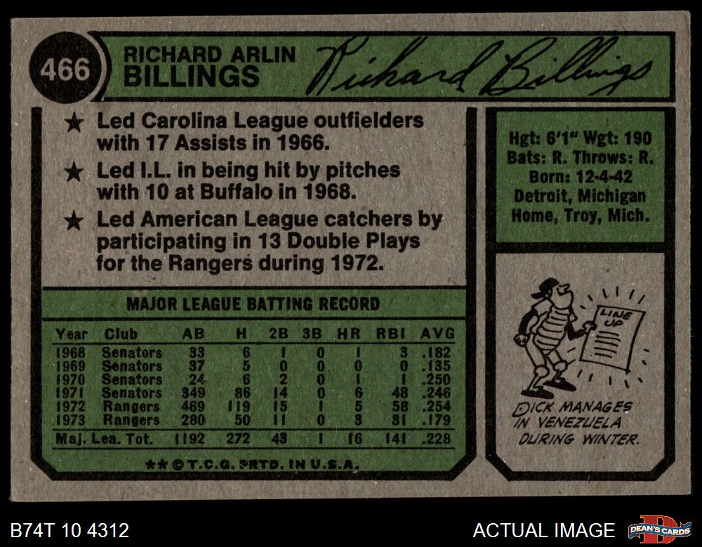1974 Topps #466 Dick Billings