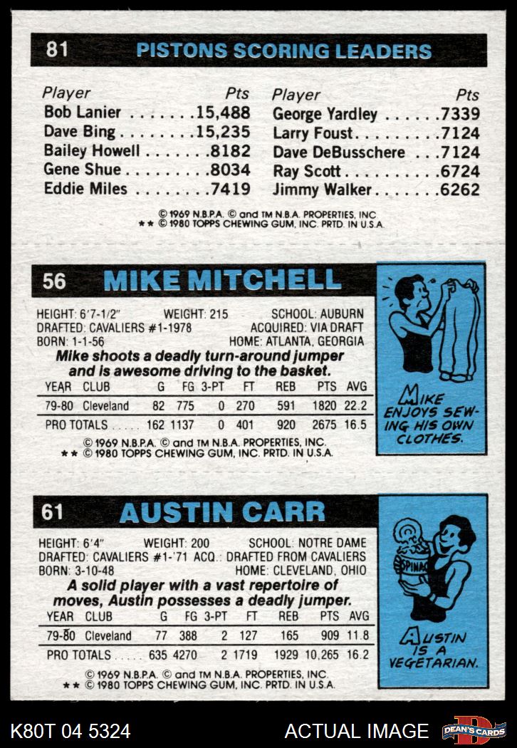 1980 Topps - Austin Carr / Mike Mitchell / Terry Tyler 61 / 56 / 81 8 - NM/MT