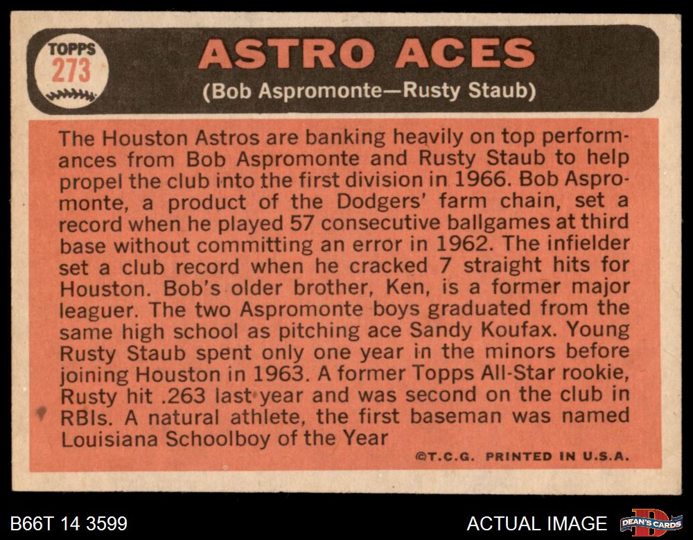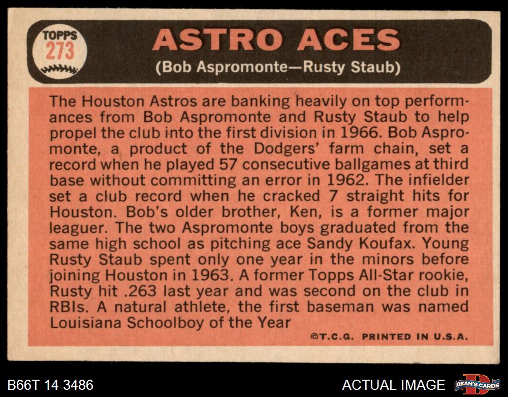 1966 Topps #273 Astros Aces