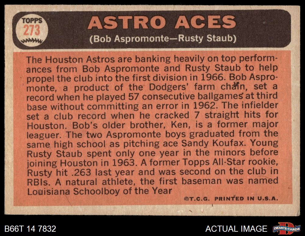 1966 Topps #273 - Rusty Staub / Bob Aspromonte Astros Aces 3 - VG