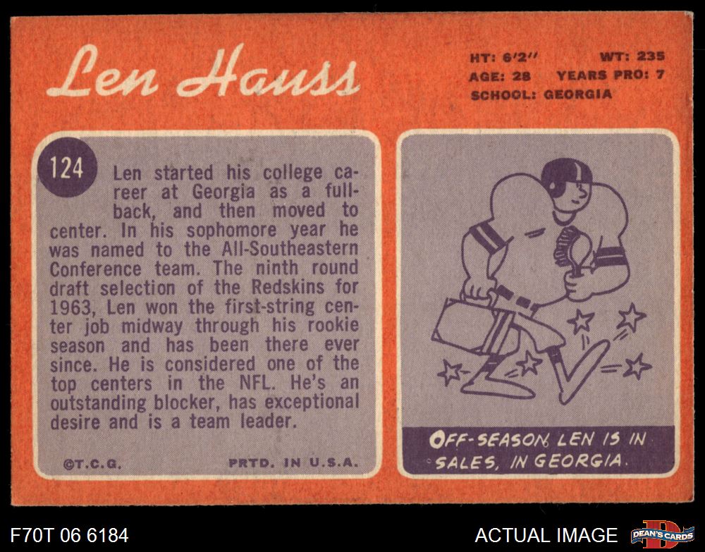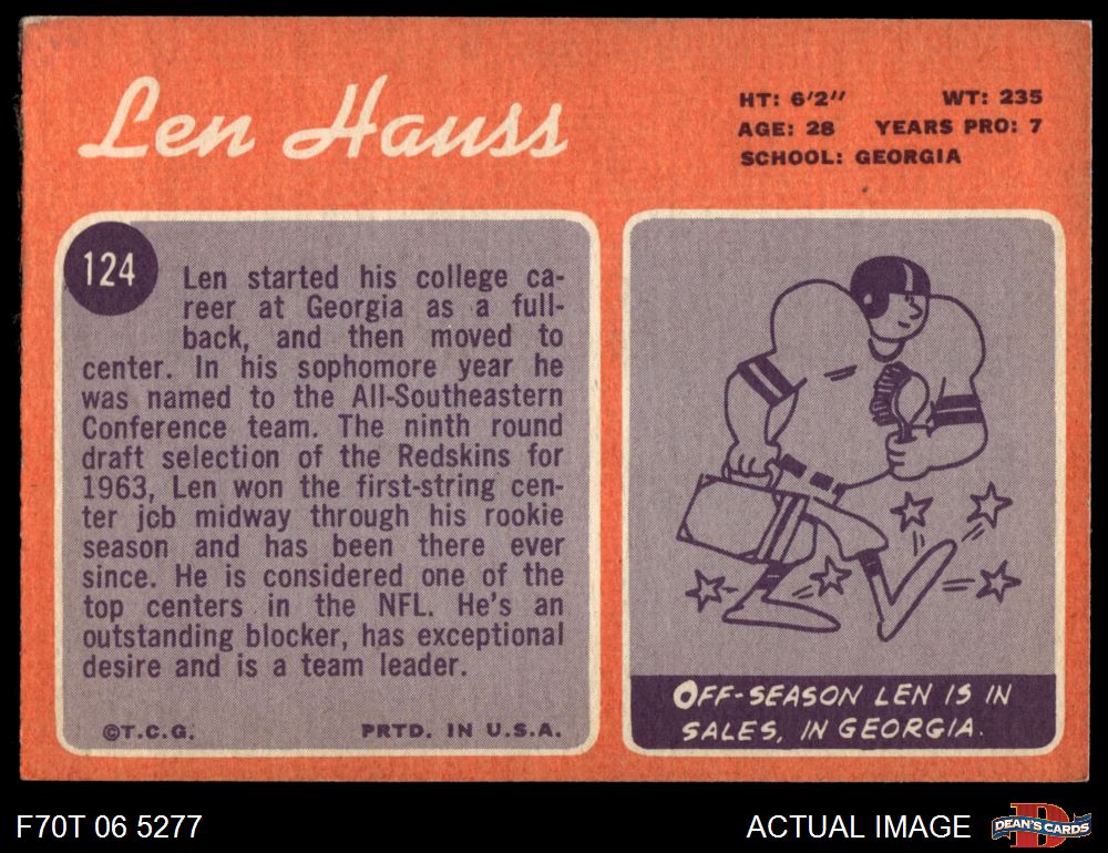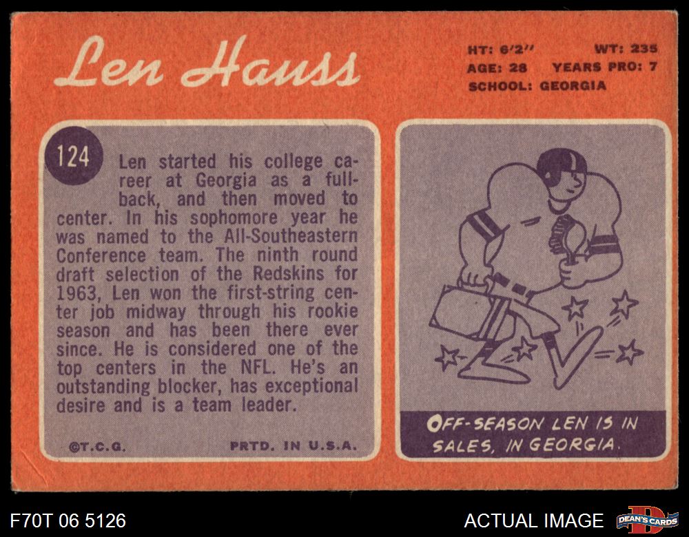 1970 Topps #124 Len Hauss 4 - VG/EX