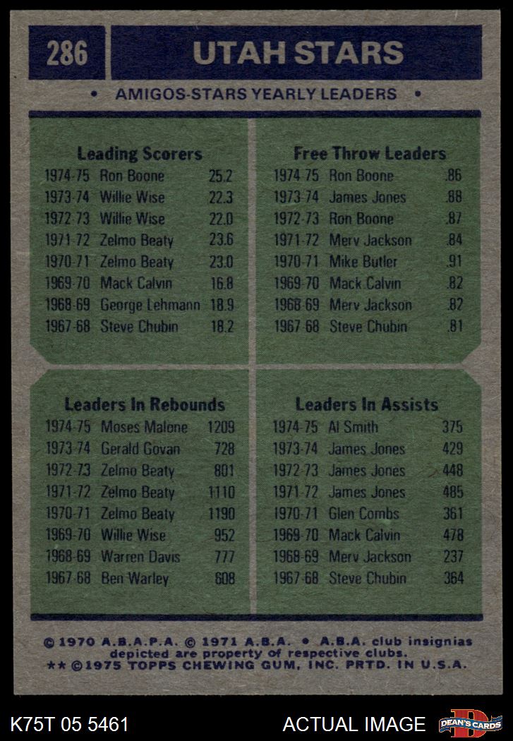 1975 Topps #286 - Ron Boone / Al Smith / Moses Malone Stars Leaders 7 - NM