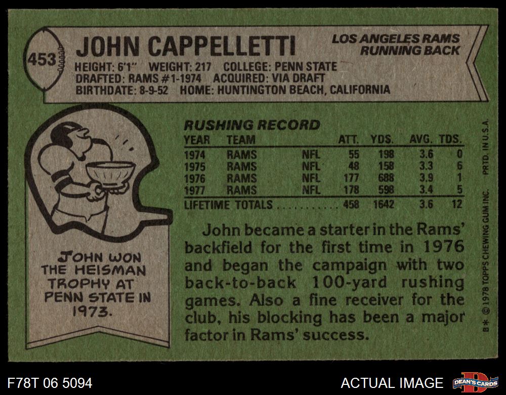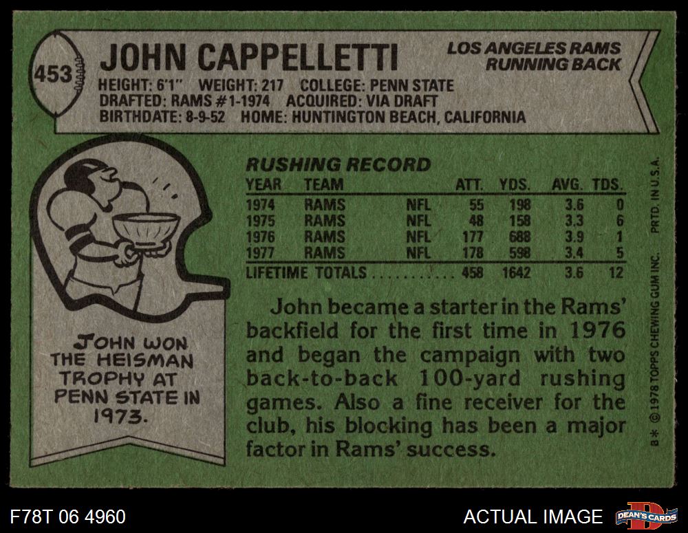 1978 Topps #453 John Cappelletti 4 - VG/EX