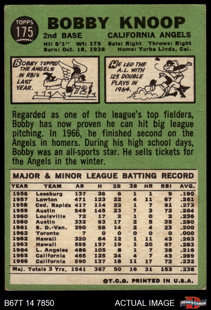 1967 Topps #175 Bobby Knoop 3 - VG