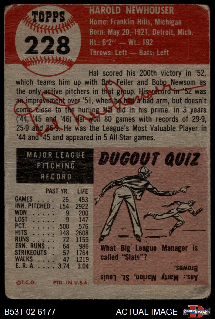 1953 Topps #228 Hal Newhouser AUTHENTIC