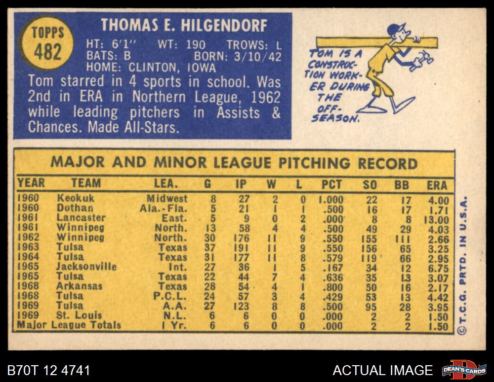 1970 Topps #482 Tom Hilgendorf 7 - NM