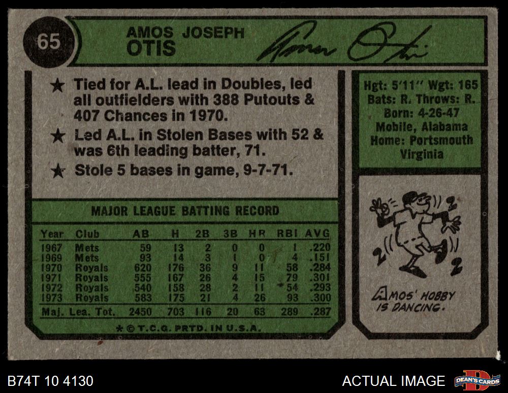 1974 Topps #65 Amos Otis 2 - GOOD