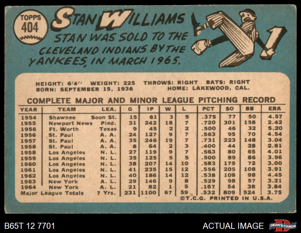 1965 Topps #404 Stan Williams 2 - GOOD