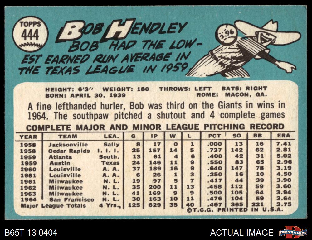 1965 Topps #444 Bob Hendley 4.5 - VG/EX+