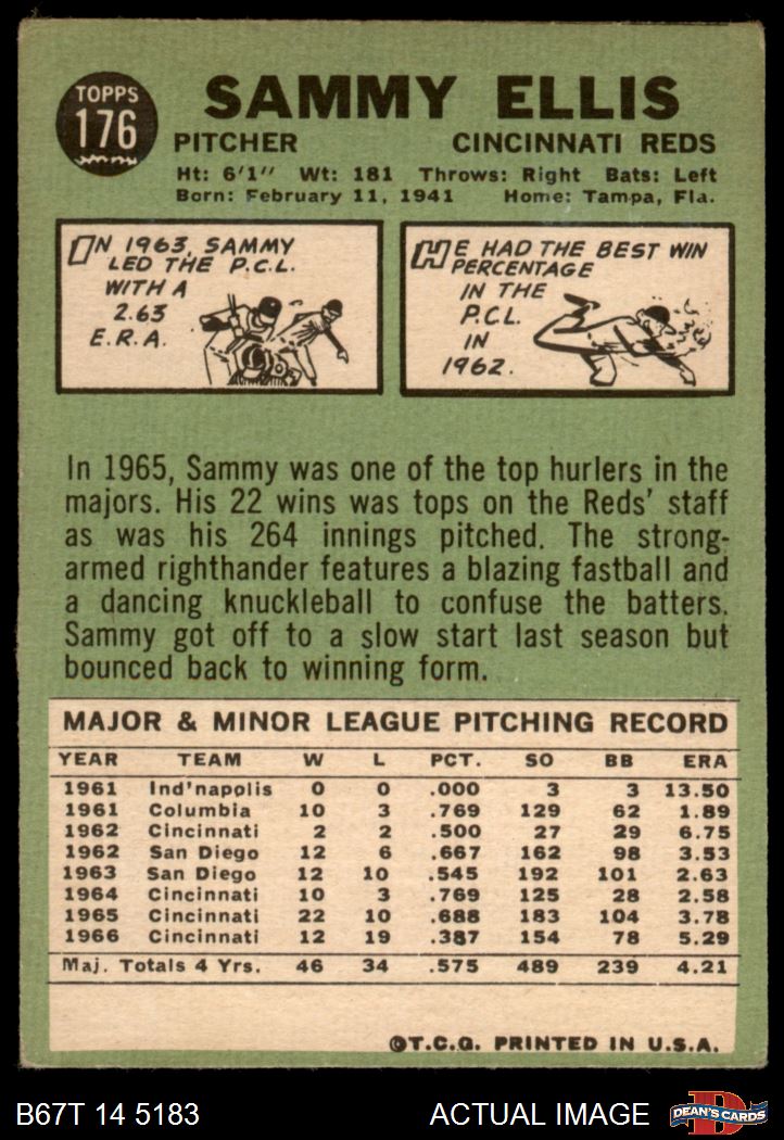 1967 Topps #176 Sammy Ellis Front Thumbnail