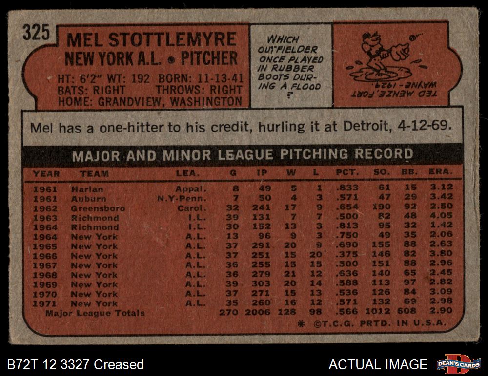 1972 Topps #325 Mel Stottlemyre 1 - POOR
