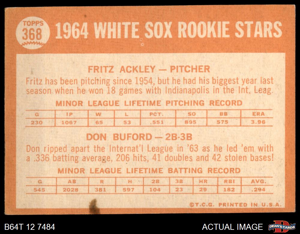 1964 Topps #368 - Don Buford / Fritz Ackley White Sox Rookies 2.5 - GD+