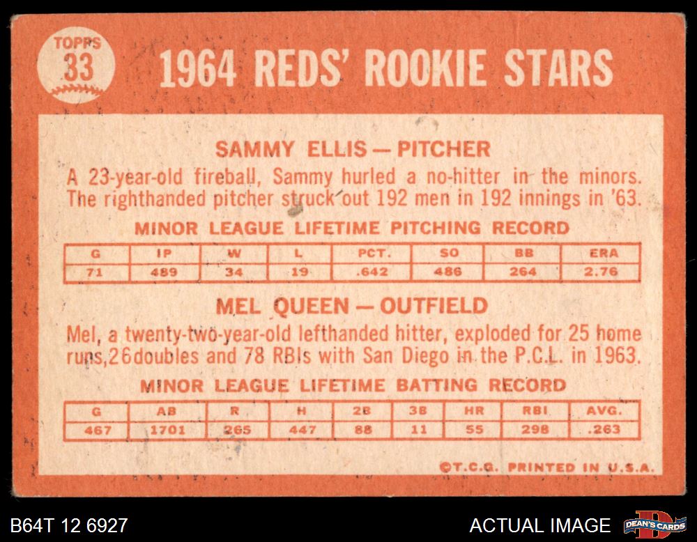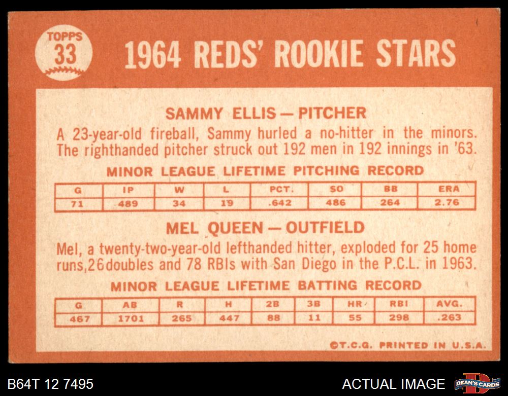 1964 Topps #33 - Sammy Ellis / Mel Queen Reds Rookies 2 - GOOD