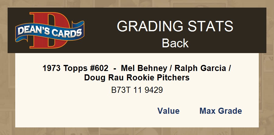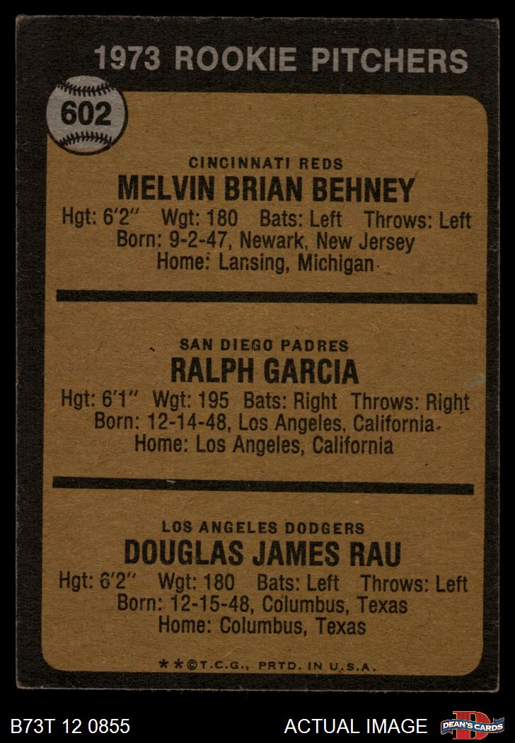 1973 Topps #602 - Mel Behney / Ralph Garcia / Doug Rau Rookie Pitchers 3 - VG