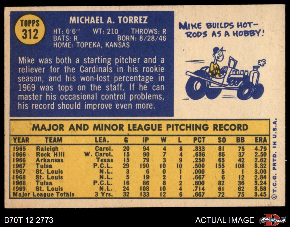 1970 Topps #312 Mike Torrez 6 - EX/MT