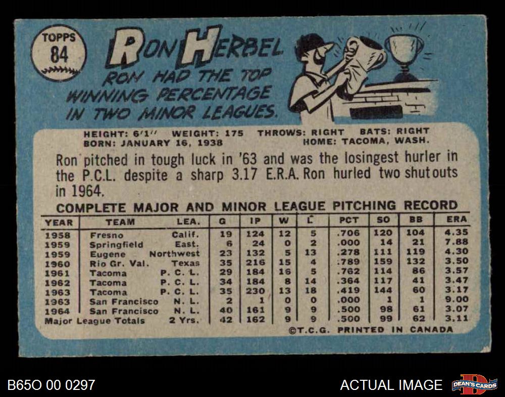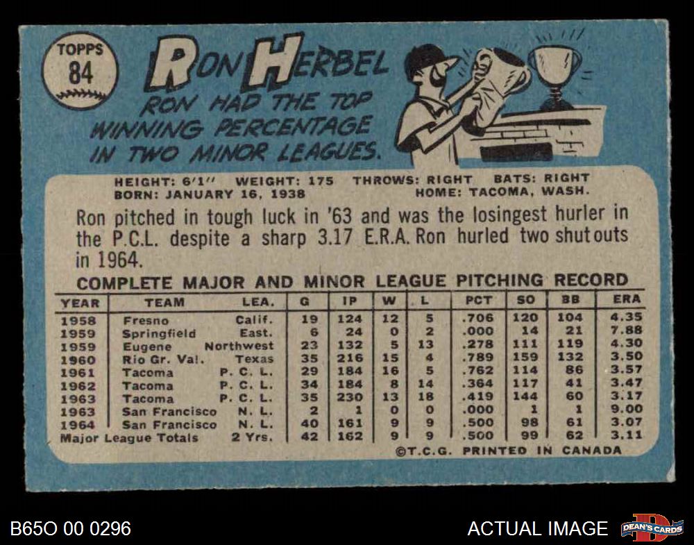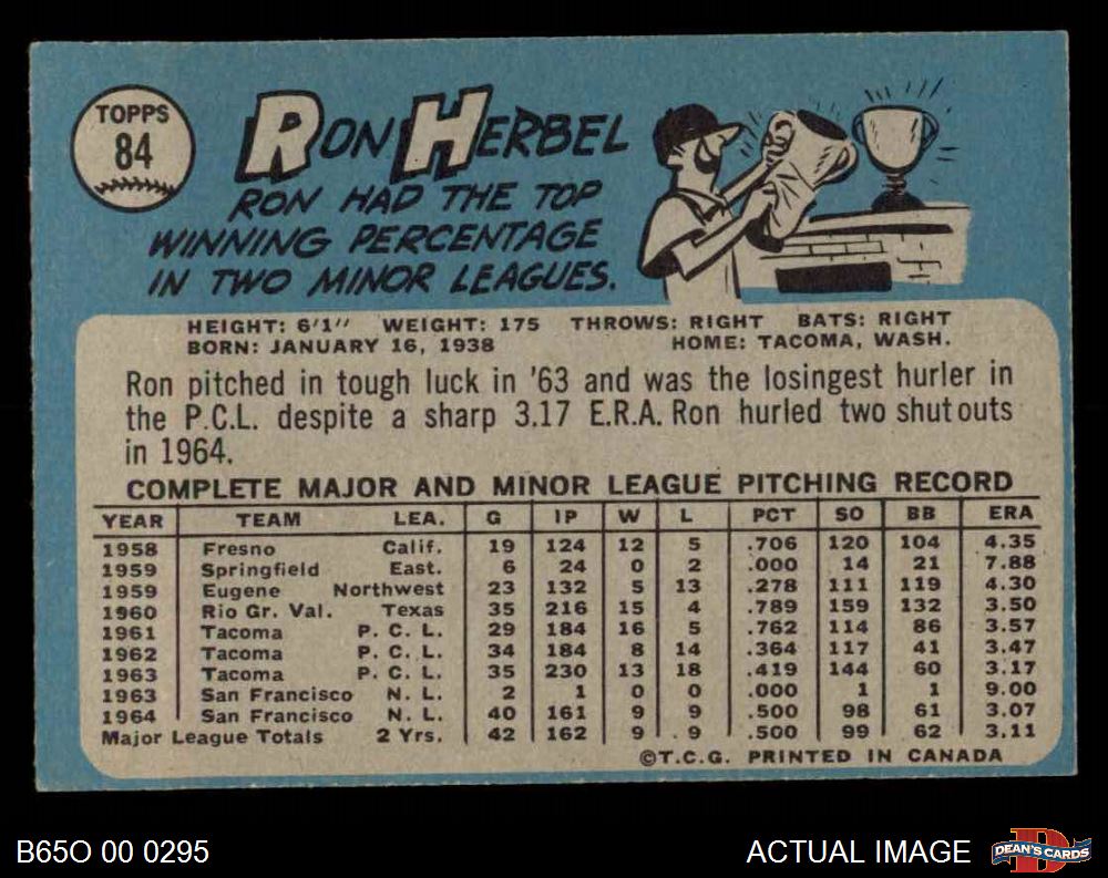 1965 O-Pee-Chee #84 Ron Herbel