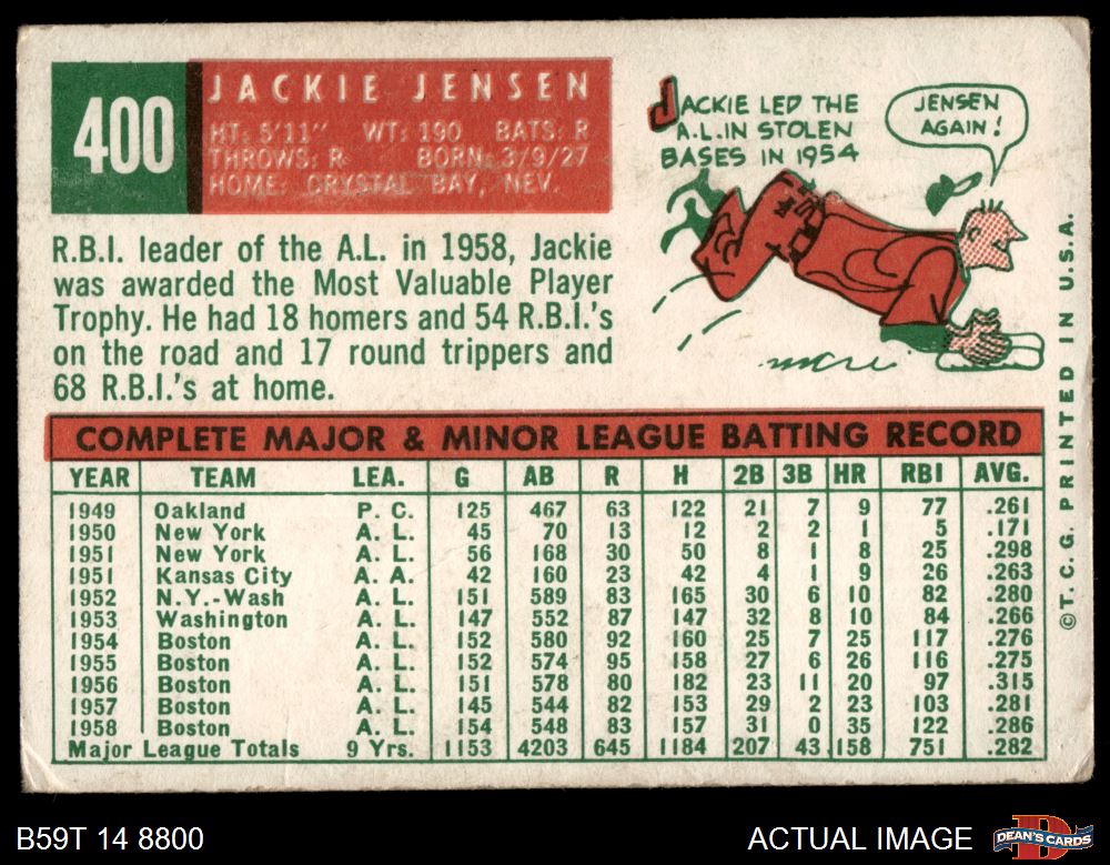 1959 Topps #400 Jackie Jensen 1.5 - FAIR