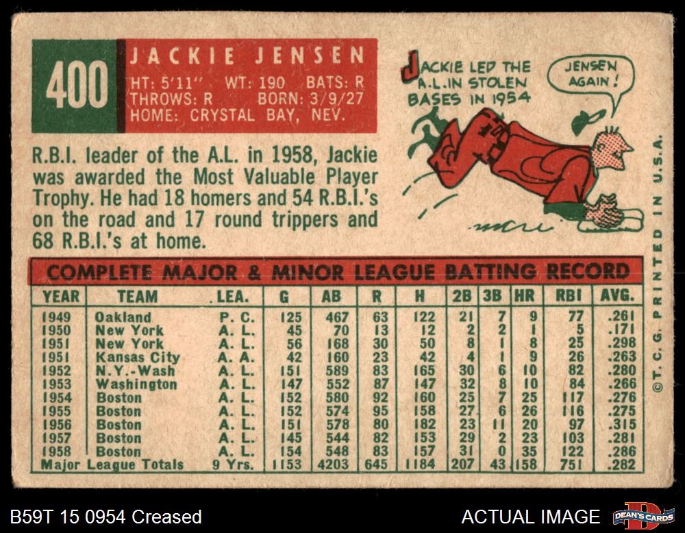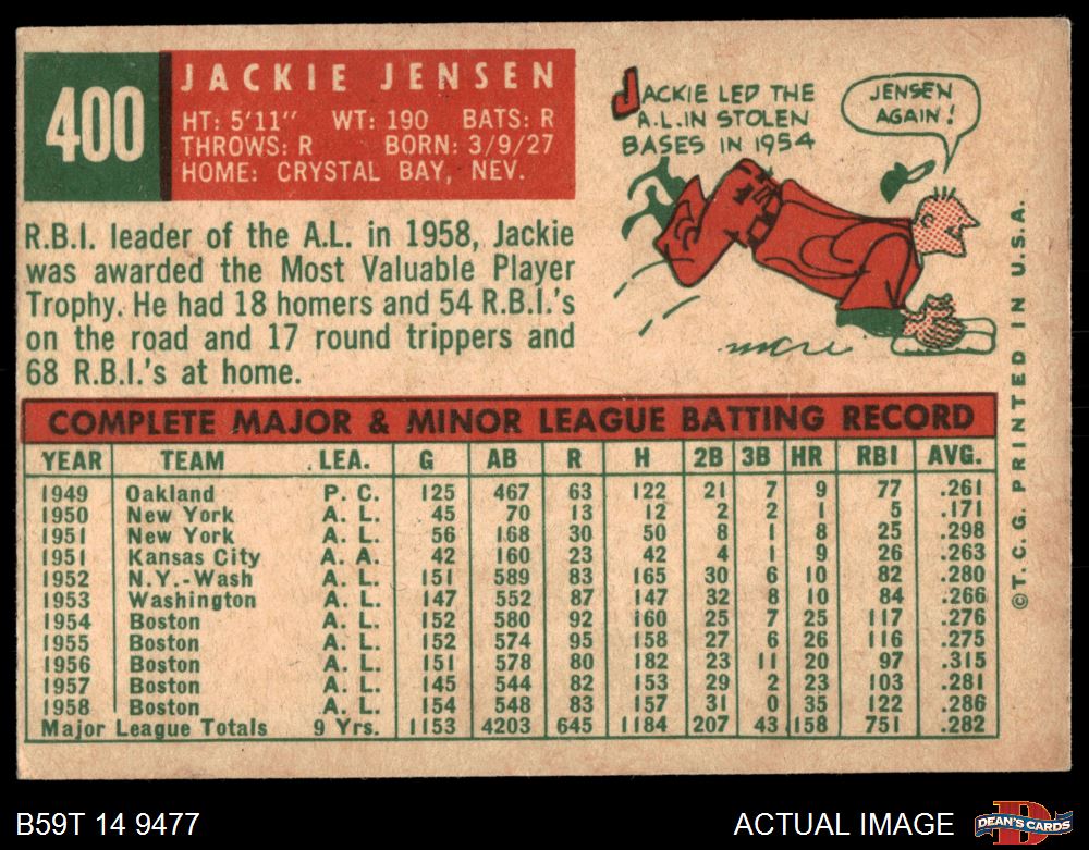 1959 Topps #400 Jackie Jensen