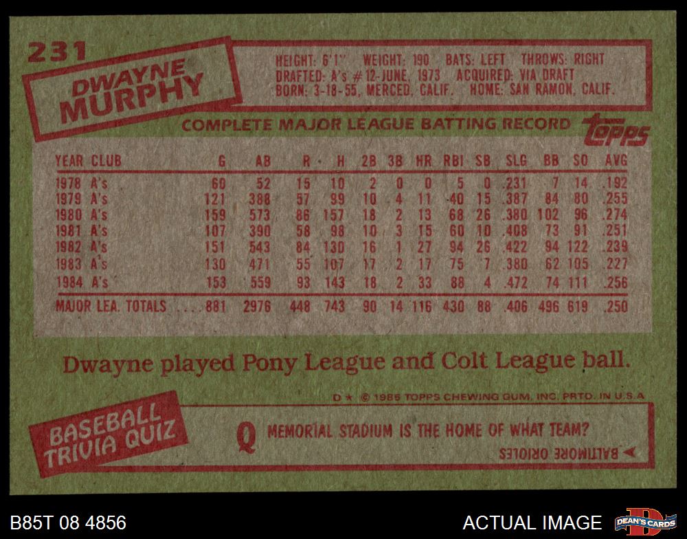 1985 Topps #231 Dwayne Murphy 8.5 - NM/MT+