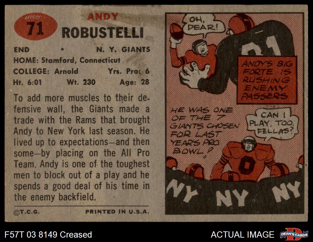 1957 Topps #71 Andy Robustelli 3 - VG