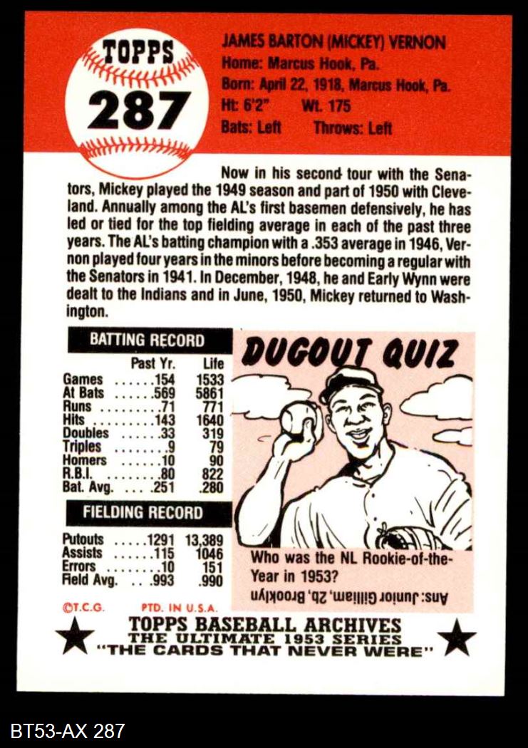 1953 Topps Archives #287 Mickey Vernon